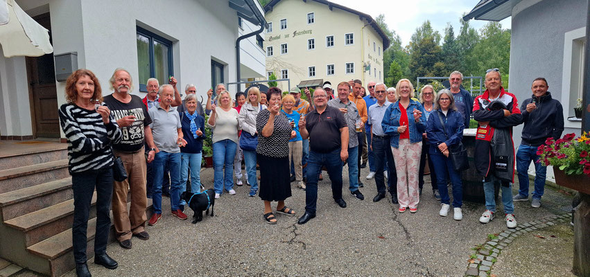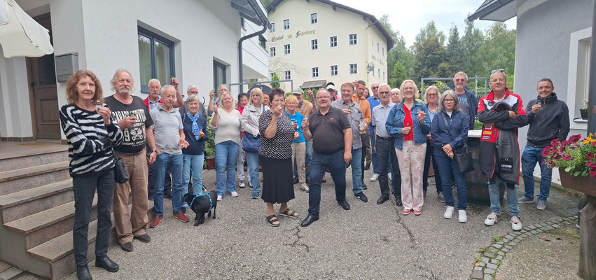 Bei sehr heißem Prachtwetter ging heute der Schloßbergpreis über die Bühne. Eine erschreckend kleine, dafür aber feine Teilnehmerzahl stellte sich der Herausforderung. Die Route führte uns über Pöttsching, Bad Sauerbrunn und Wiesen traditionell an der Burg Forchtenstein vorbei in die wunderschöne Landschaft der buckligen Welt nach Hochwolkersdorf und Schwarzenbach. Im Gasthof Mössner machten wir Rast und hielten das Schätz und Quizspiel ab. Die Rückfahrt erfolgte über "die Hölle" nach Wiesmath und von dort wieder zu unserem Ausgangspunkt, dem Gasthof zur Grenze zurück. Dort erwartete uns wieder ein köstliches Essen und die Siegerehrung. Erich Wagner siegte vor Günter Ledl und Josef Ebner...........ein feines Tagerl !